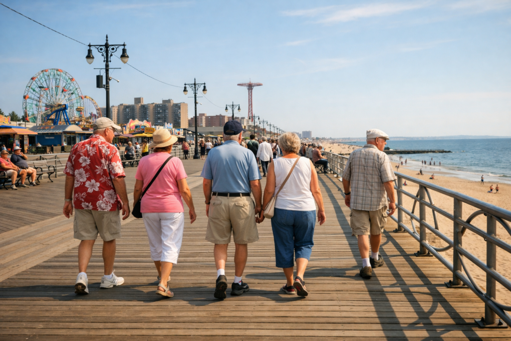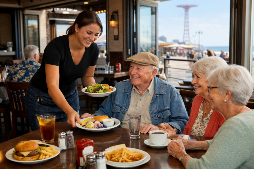 Seniors often prefer calmer places. Brighton Beach can offer that. If you choose a sit-down dinner there, tipping will feel more “normal” than the boardwalk rush.