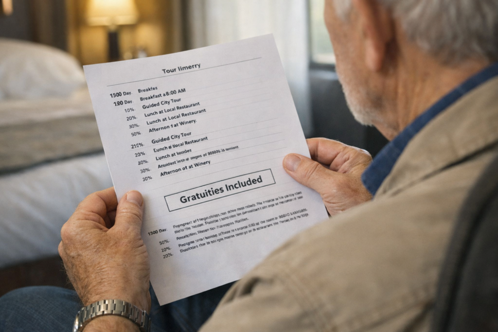For seniors, multi-day tour tipping is also about consistency. Instead of making one big emotional decision at the end, it can help to tip along the way, or set aside a daily amount in an envelope.